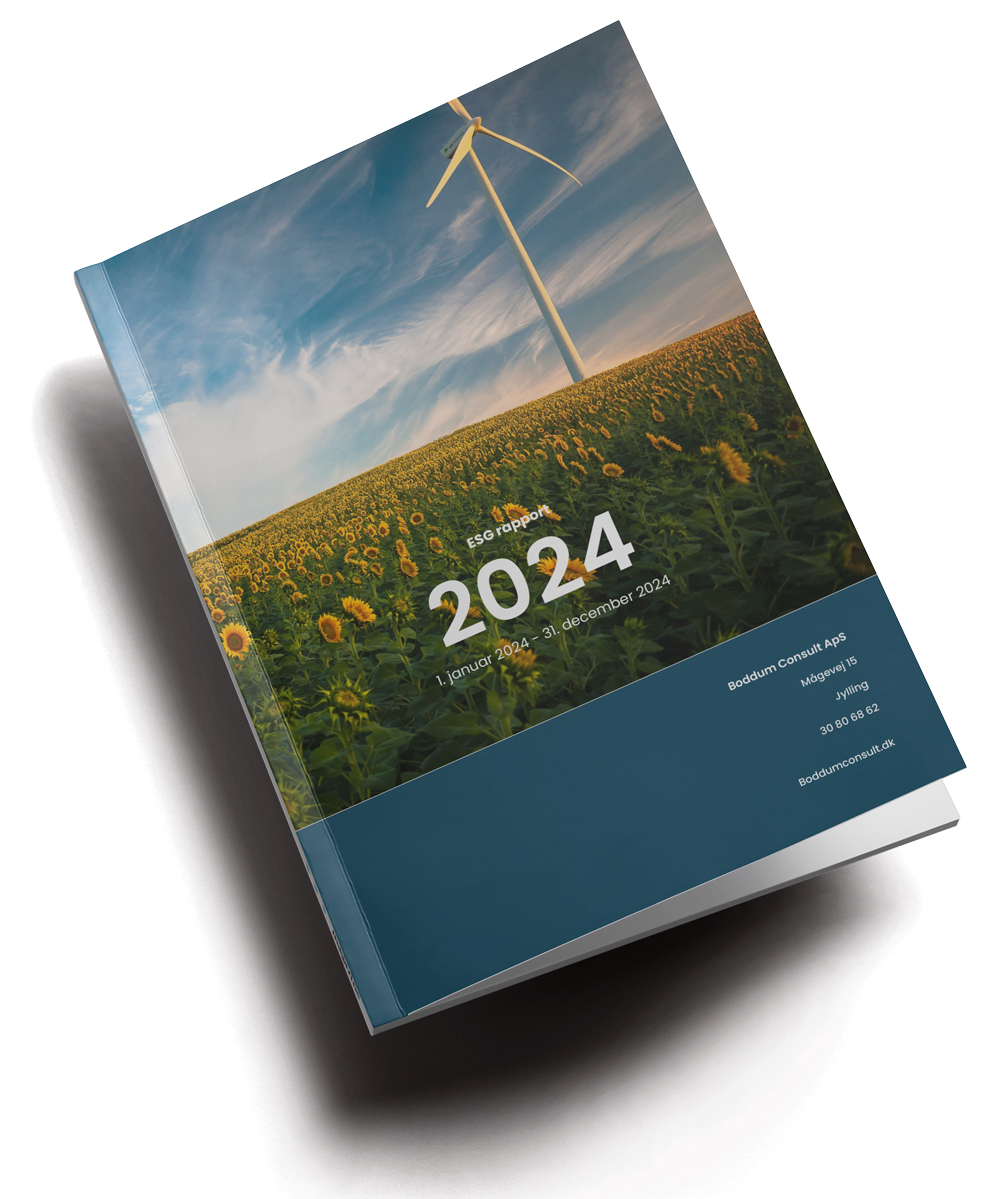 Som en mindre virksomhed er ESG-rapportering endnu ikke et krav for Boddum Consult, men vi mener, det er vigtigt at tage de indledende skridt. Med denne rapport ønsker vi at øge vores bevidsthed og dokumentere, hvordan vi kan drive en endnu mere ansvarlig virksomhed, der tager ansvar for de sociale, klima- og miljømæssige aftryk, vi har mulighed for at påvirke.